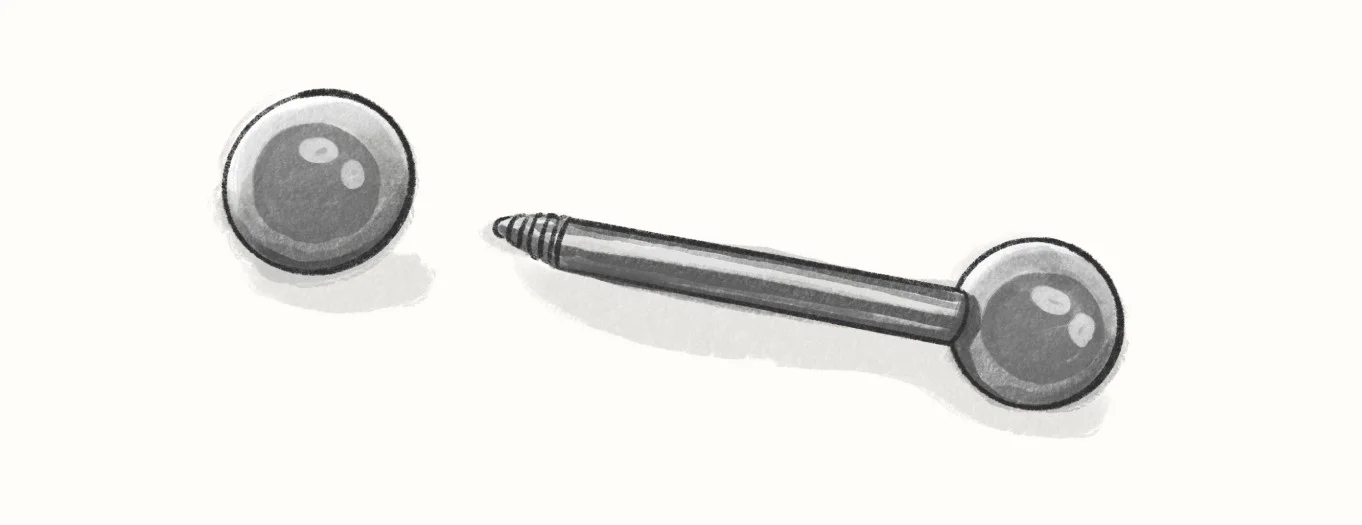 As I try to unscrew the piercing while watching myself in the mirror, it’s not loosening. I call the parlor to see if I’m doing something wrong.