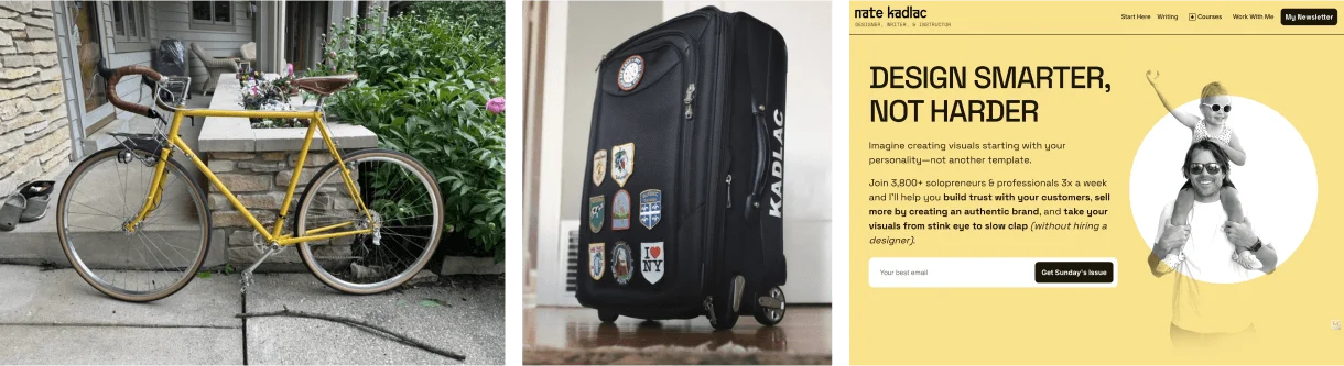 My restored ‘83 Schwinn. My travel bag. My personal website.