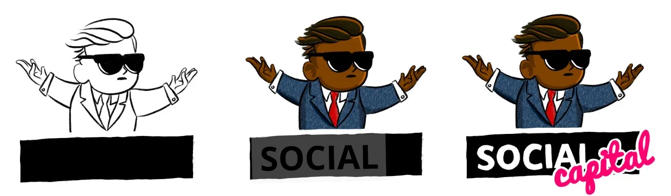The best images come from the unexpected collision of ideas. Non-obvious ideas with a twist. You don’t get here by drawing still life fuits on a table. There’s a time and place for that, but unless you’re dying to draw fruit, I recommend starting by tracing.