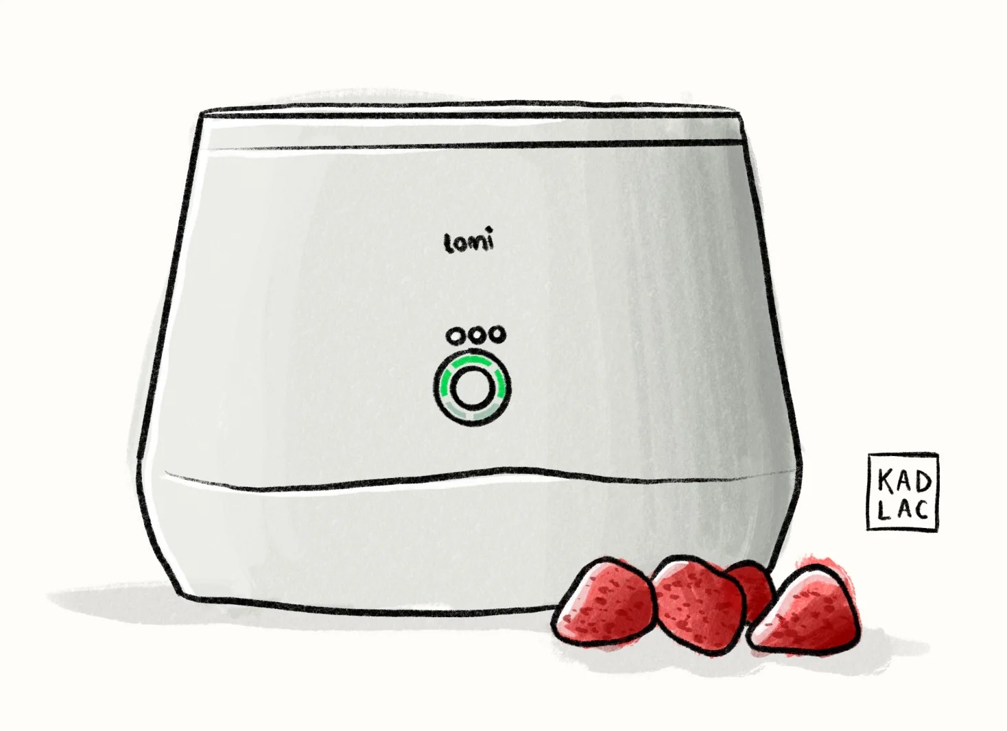 I wrote a satirical review recently about an expensive Lomi Compost bucket, and all I did was take a picture of it on my counter and took another image of some strawberries to add to the image. It’s a signature piece for my Procreate article because it’s unique, and no one else has anything like it.