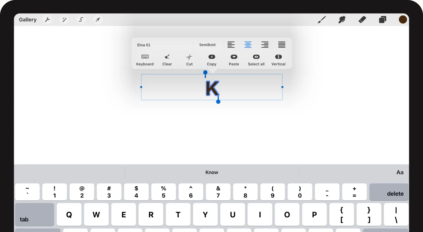Start by adding text to your canvas in Procreate